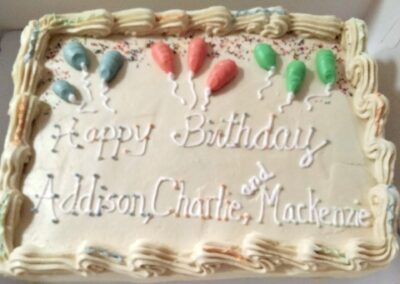 This cake size is great for large events! Decorated here for a children’s birthday.